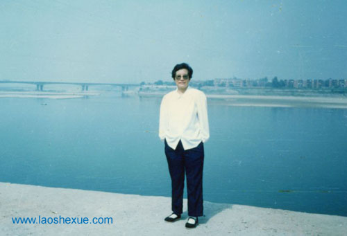 1939年8月,老舍先生在老河口慰问抗日军民达一周之久,后回重庆写下了长诗《老河口》,诗中多次提到"河口的公园":"这是河口的公园/这是战时河口的风景线/柳荫以外,公园的门前/紧接着市区与商店……"老河口也是汉江上游的一颗璀璨的明珠,老舍在诗中,生动地描写道:"穿过小街,脚下就是河岸/大小的木船/高矮的桅杆/水上的人家男呼女唤……"这些生动的景象,无不对胡老及舒济、于滨产生极大的诱惑,胡老因为接待采访等应酬太多,只能由舒济、于滨代步前往,此行受到老河口市领导的热情接待。